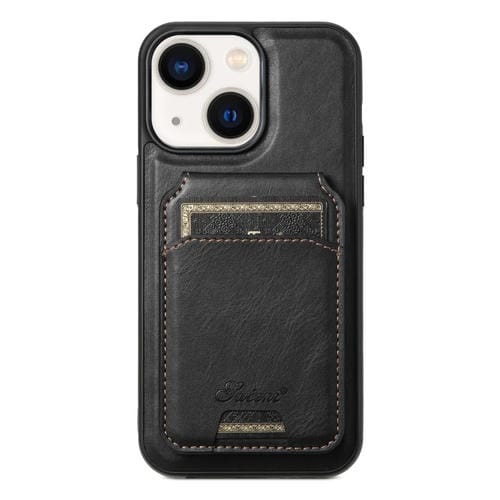 For iPhone 14 Suteni H15 MagSafe Oil Eax Detachable Wallet Leather Phone Case (Black)