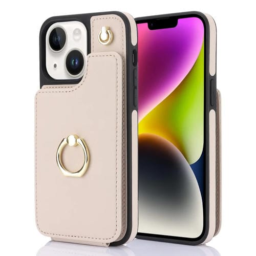 Funda para Teléfono iPhone 14 Ym005 Skin Feel Card Bag con Cordón Largo (Albaricoque)
