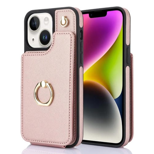 Funda para teléfono iPhone 14 Ym005 Skin Feel Card Bag con cordón largo (Oro Rosa)
