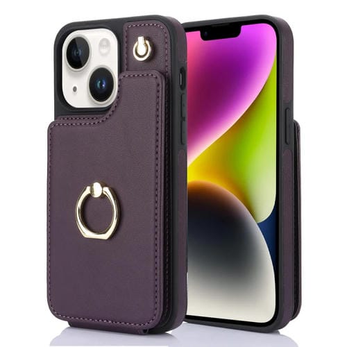 Funda para Teléfono iPhone 14 Ym005 Skin Feel Card Bag con Cordón Largo (Púrpura Oscuro)