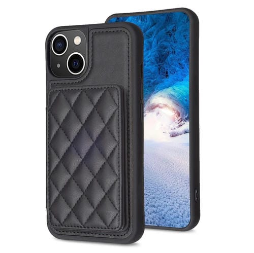 For iPhone 15 BF25 Square Plaid Card Bag Holder Phone Case(Black)