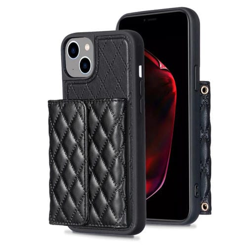 For iPhone 15 Horizontal Wallet Rhombic Leather Phone Case (Black)