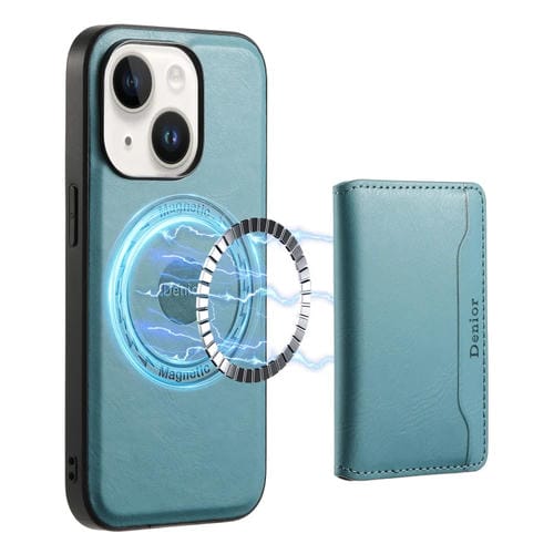 Pour iPhone 15 Denior Cowhide Texture Cuir MagSafe Étui de téléphone portefeuille détachable (Bleu)