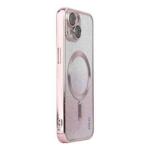 Pour iPhone 15 ENKAY Hat-Prince Étui de téléphone antichoc à paillettes magnétiques avec film d'objectif (rose)