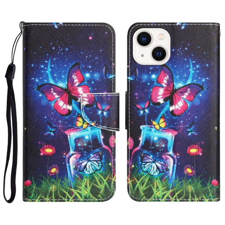 Estuche de teléfono Cuero iPhone 15 Dibujo Coloreado Mariposa de Botella