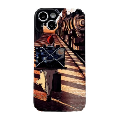 For iPhone 15 Glossy PC Phone Case with Precise Hole (Train Station)