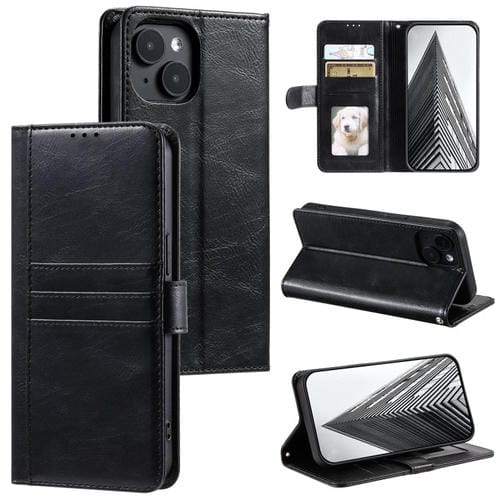 Pour iPhone 15 Étui de téléphone en cuir portefeuille simple pour 6 cartes (noir)
