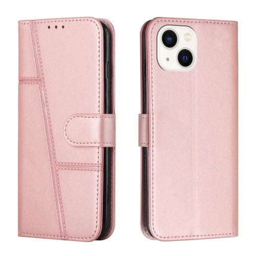 Pour étui de téléphone en cuir iPhone 15 avec boucle de texture de veau cousue (or rose)