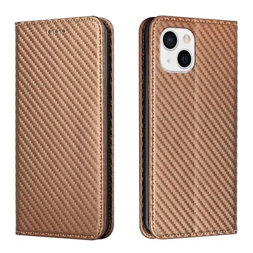 For iPhone 15 Carbon Fiber Texture Kickstand Leather Phone Case (Brown)