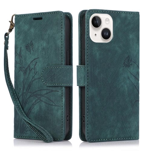 For iPhone 15 Orchid Butterfly Embossed Leather Phone Case (Green)
