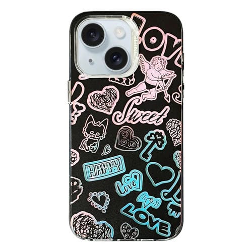 For iPhone 15 Phone Case TPU+PC with Colorful Pattern (Graffiti Angel)