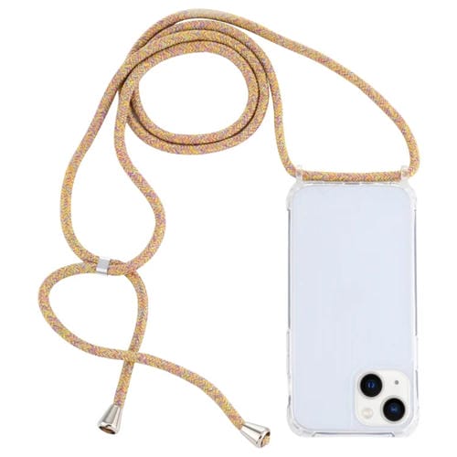 Funda Protectora Acrílico para iPhone 15 a Prueba de Golpes con Cordón (Arcoíris Amarillo)