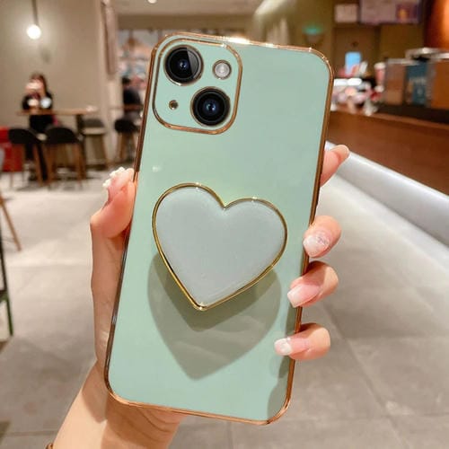 Pour iPhone 15 Galvanoplastie Love Heart Holder TPU Phone Case (Vert)