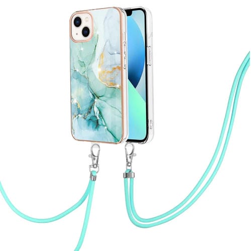 Estuche TPU para iPhone 15 Galvanoplastia Patrón Mármol Imd a Prueba de Golpes con Cordón para El Cuello (Verde)