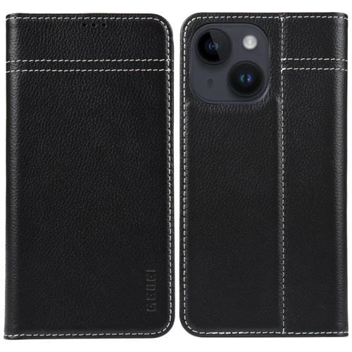 Funda para Teléfono Gebei iPhone 15 Cuero Tapa Horizontal Grano Superior (Negro)