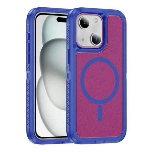For iPhone 15 Guard Magsafe Phone Case with Matte Magnetic Ring (Blue+Rose Red)