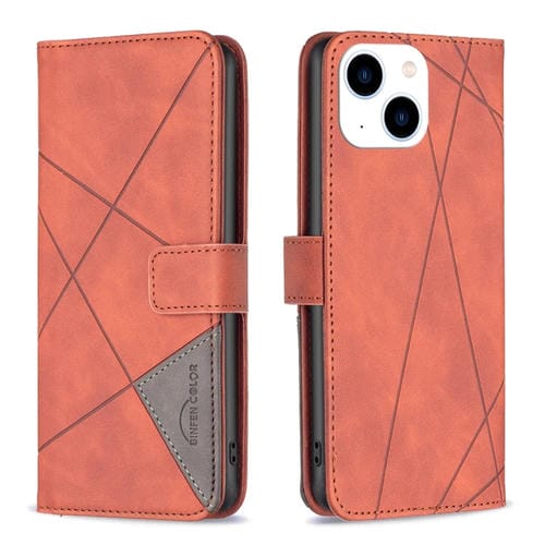 Pour iPhone 15 Étui de téléphone en cuir à texture losange à boucle magnétique (marron)