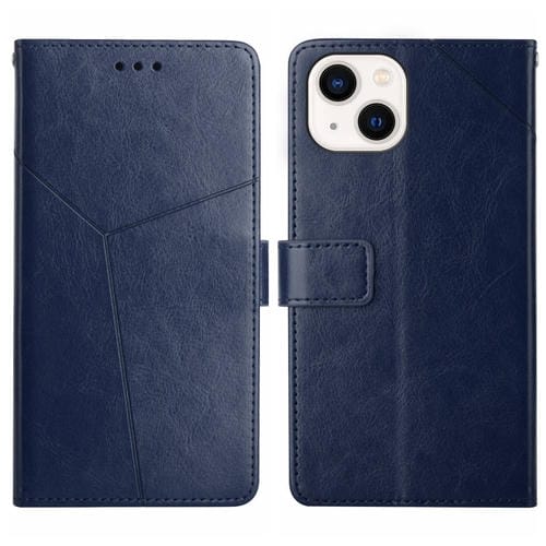 For iPhone 15 HT01 Y-shaped Pattern Flip Leather Phone Case (Blue)