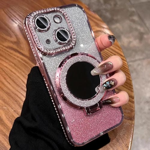 For iPhone 15 MagSafe Rhinestone Mirror Glitter TPU Phone Case(Sakura Pink)