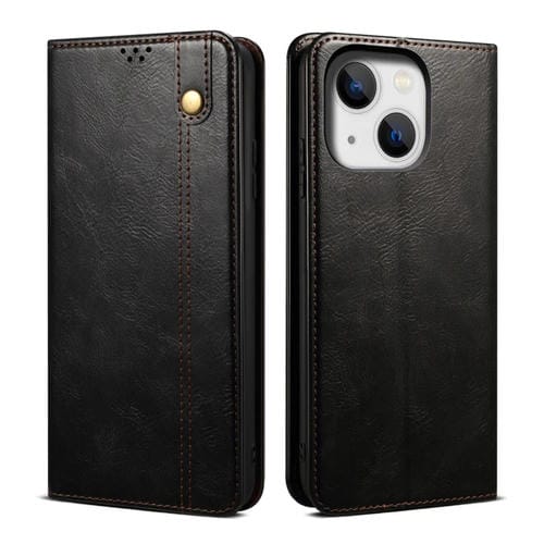 Funda para Teléfono iPhone 15 Oil Wax Crazy Horse Texture Cuero (Negro)