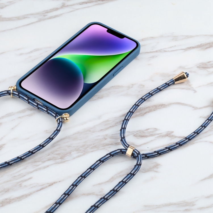 Funda para iPhone 15 Plus TPU Paja de Trigo a Prueba de Golpes con Cordón para El Cuello (Azul)