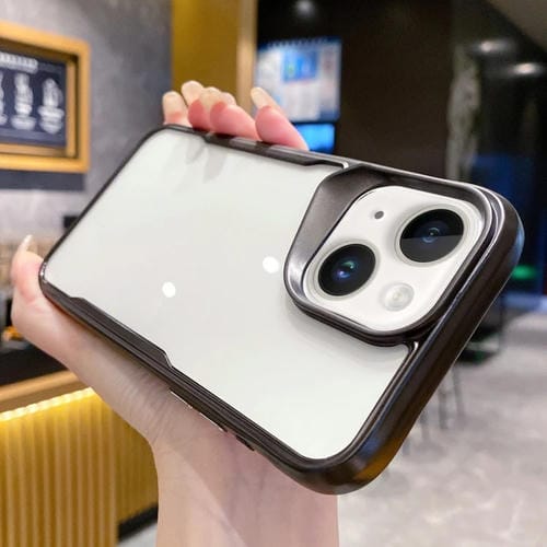 Caja híbrida para teléfono iPhone 15 Plus con marco de TPU galvanizado (Negro)