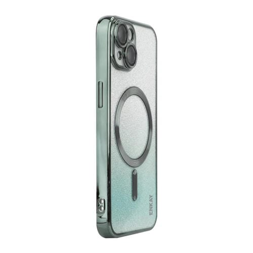 For iPhone 15 Plus ENKAY Hat-Prince Shockproof Phone Case with Magnetic Glitter and Lens Film (Green)