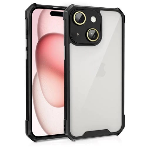Estuche Acrílico para Teléfono iPhone 15 Plus a Prueba de Golpes con Película de Vidrio para Lentes (Negro)