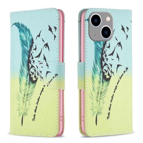 Estuche de Teléfono para iPhone 15 Plus Cuero con Patrón de Dibujo Coloreado (Pluma)