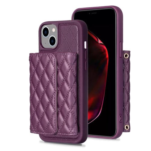 Pour iPhone 15 Plus Étui de téléphone en cuir rhombique à portefeuille horizontal (violet foncé)