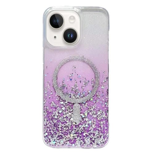 For iPhone 15 Plus Gradient Glitter Hybrid TPU MagSafe Phone Case (Gradient Purple)