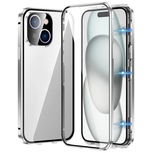 Estuche Magnético para iPhone 15 Plus Vidrio Templado HD con Doble Hebilla (Plateado)