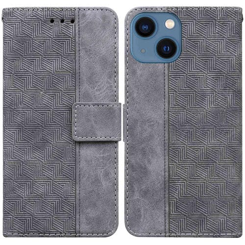 Estuche para Teléfono iPhone 15 Plus Cuero con Relieve Geométrico (Gris)