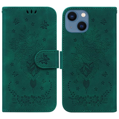 Estuche para Teléfono iPhone 15 Plus Cuero En Relieve Butterfly Rose (Verde)