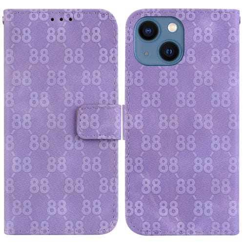 For iPhone 15 Plus Double 8 Shape Embossed Leather Phone Case (Purple)