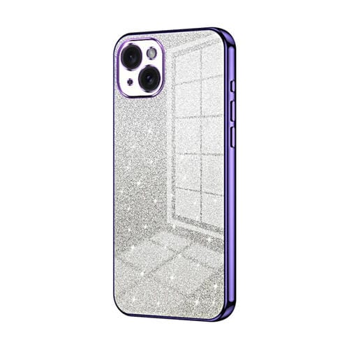 Pour iPhone 15 Plus Étui de téléphone électrolytique en poudre de paillettes dégradées (violet)