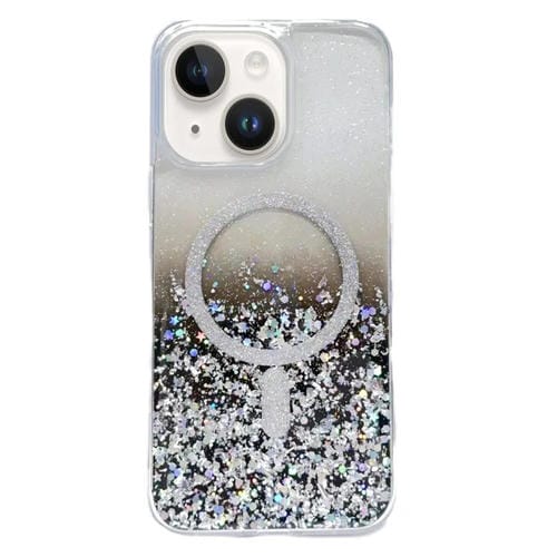 For iPhone 15 Plus MagSafe Hybrid Phone Case Gradient Glitter TPU PC Case (Gradient Black)