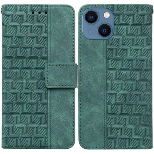 Funda de teléfono iPhone 15 Plus Cuero Relieve Geométrico (Verde)