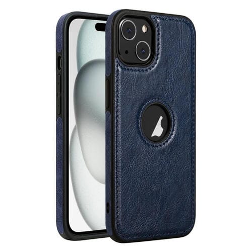 Funda para Teléfono iPhone 15 Plus con Costuras de Textura de Cuero (Azul)