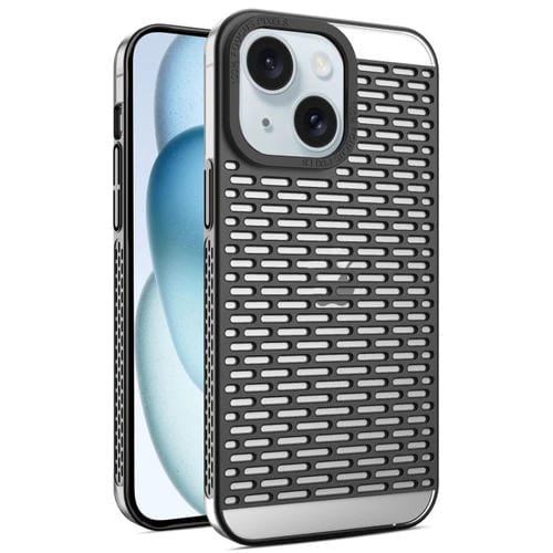 Pour iPhone 15 Plus Étui de téléphone à dissipation thermique en PC galvanisé mat creux (noir)