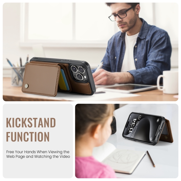 Estuche para Teléfono Jeehood J05 para iPhone 15 Plus Cuero Rfid Estilo Magnético Empresarial (Marrón)