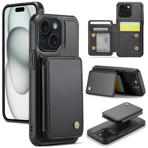 Estuche para iPhone 15 Plus Jeehood J05 Cuero Rfid Magnético Empresarial (Negro)