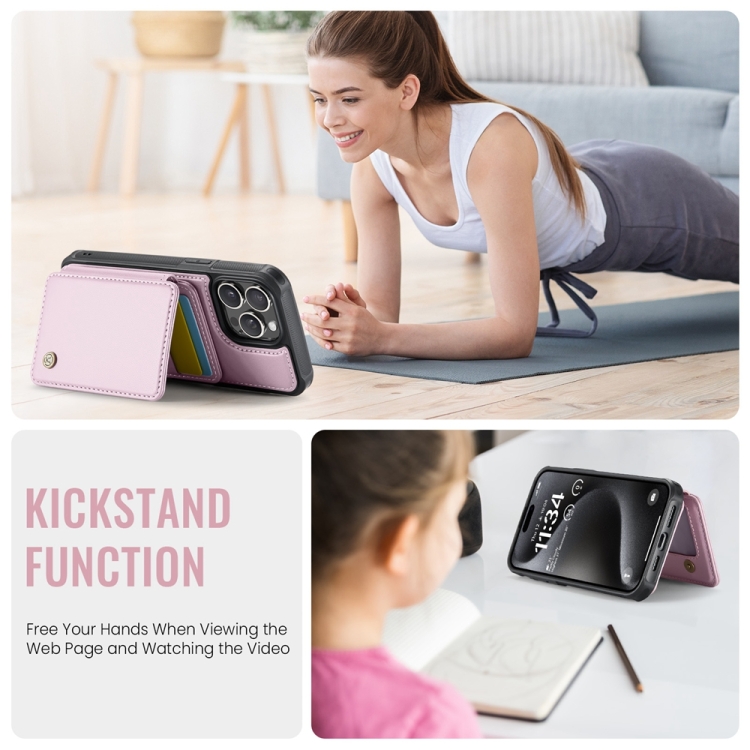 Estuche para Teléfono Jeehood J05 para iPhone 15 Plus Cuero Rfid Estilo Magnético Empresarial (Rosa)