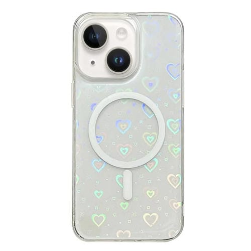 For iPhone 15 Plus Laser Love MagSafe TPU Phone Case(Transparent)