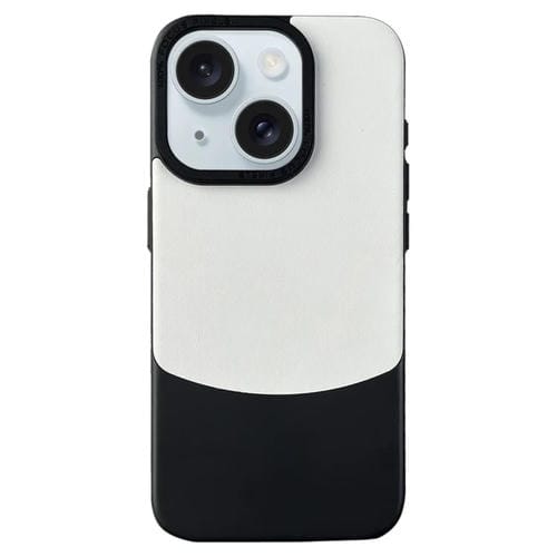 Funda para iPhone 15 Plus Napa Texture PC con Funda de Cuero para Teléfono (Panda Black)