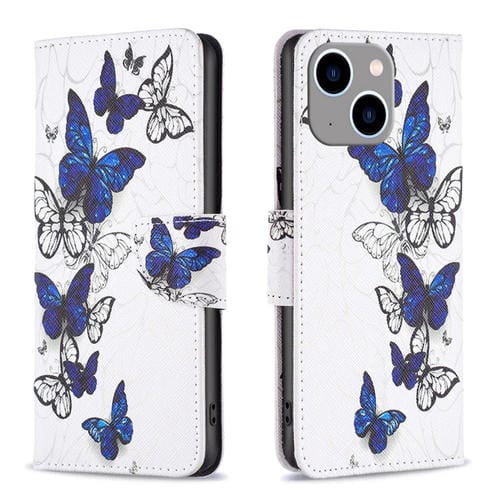 For iPhone 15 Plus Colored Drawing Pattern Flip Leather Phone Case (Butterflies)