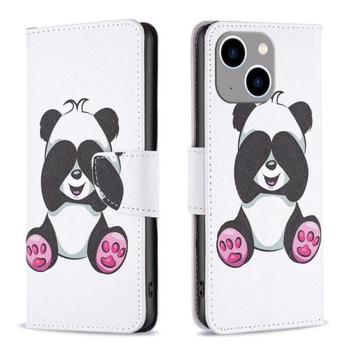 Funda de Cuero para iPhone 15 Plus Flip con Patrón de Dibujo Coloreado (Panda)