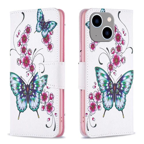 Pour iPhone 15 Plus Étui de téléphone à rabat en cuir à motif de dessin coloré (fleur papillon)