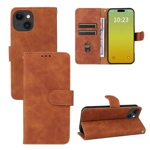 Funda para iPhone 15 Plus Skin Feel Magnetic Flip Leather Phone Case (Marrón)