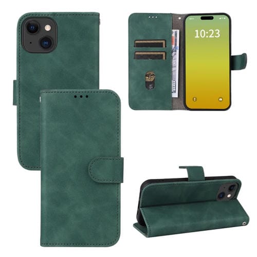 Funda para iPhone 15 Plus Skin Feel Flip Leather Magnetic Verde